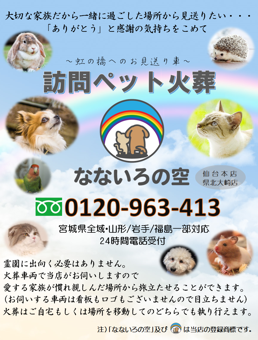 フリーダイヤル0120-963-413または下記LINE登録もしくはメール omiokuri@petkasou-nanaironosora.com まで